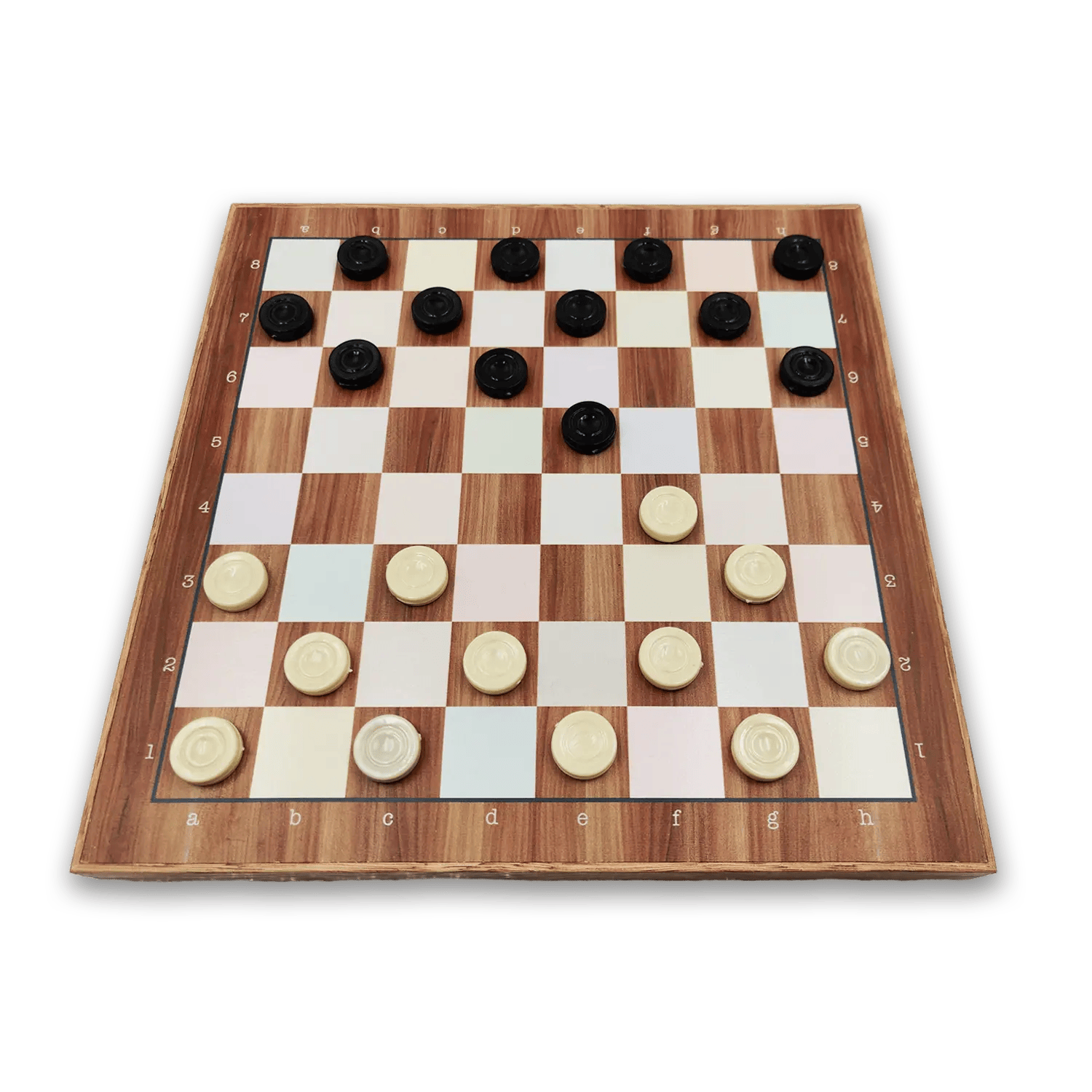 Het is goed om te weten dat het dambord, niet een officieel dambord is. Het speelveld heeft namelijk 8×8 vakjes, waar een officieel dambord 10×10 vakjes heeft.