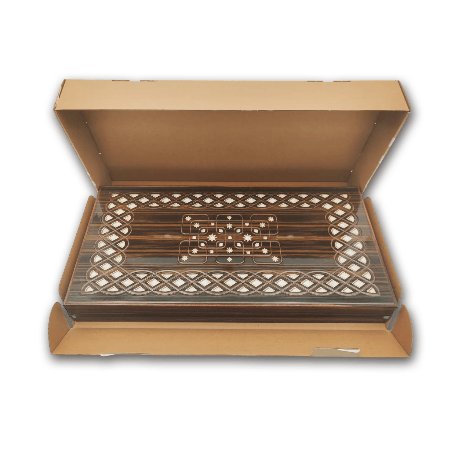 Extra groot backgammon bord (50cm) met prachtige houtsnijwerken, met de hand vervaardigd door ambachtslieden in Turkije.