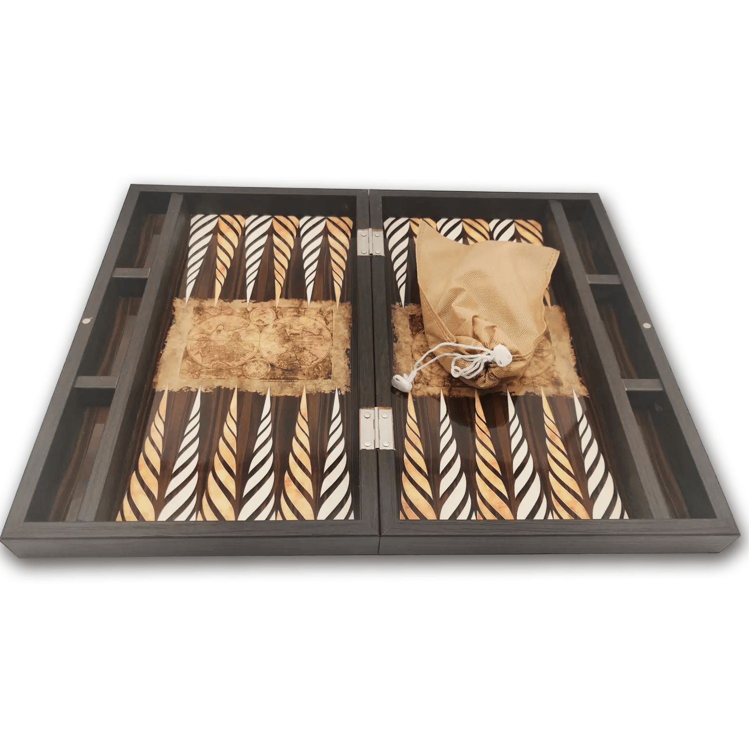 Stap terug in de tijd en beleef het oude spel van Backgammon op een moderne en trendy manier met het Yenigün Tavla bordspel. Dit unieke bordspel is geïnspireerd op de oude wereldkaarten en heeft een prachtige afbeelding van een historische wereldmap op de buitenkant van het bord. Aan de binnenkant van het bord is de wereldkaart ook verwerkt.