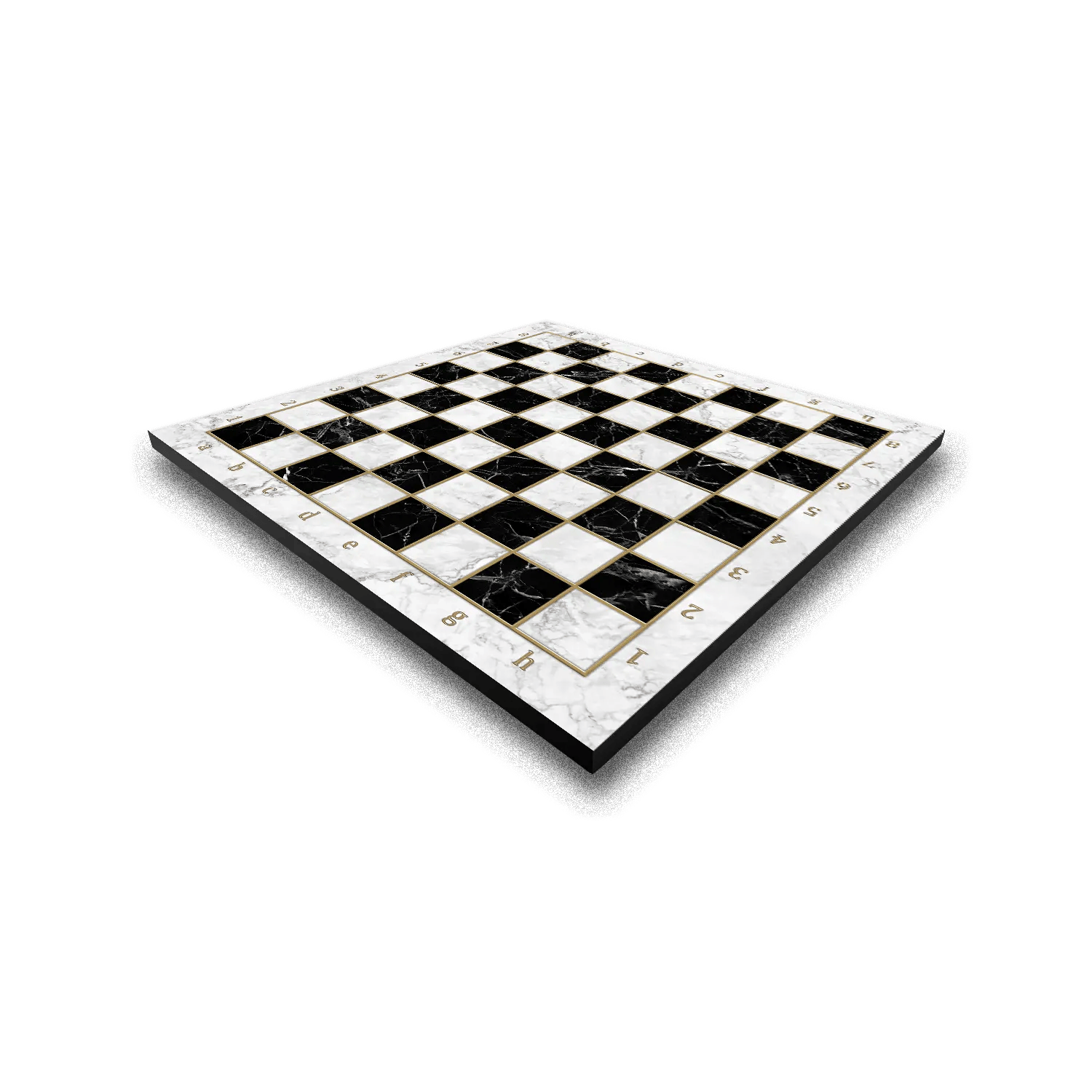 Beschrijving Deluxe wit schaakbord marmer print + schaakstukken