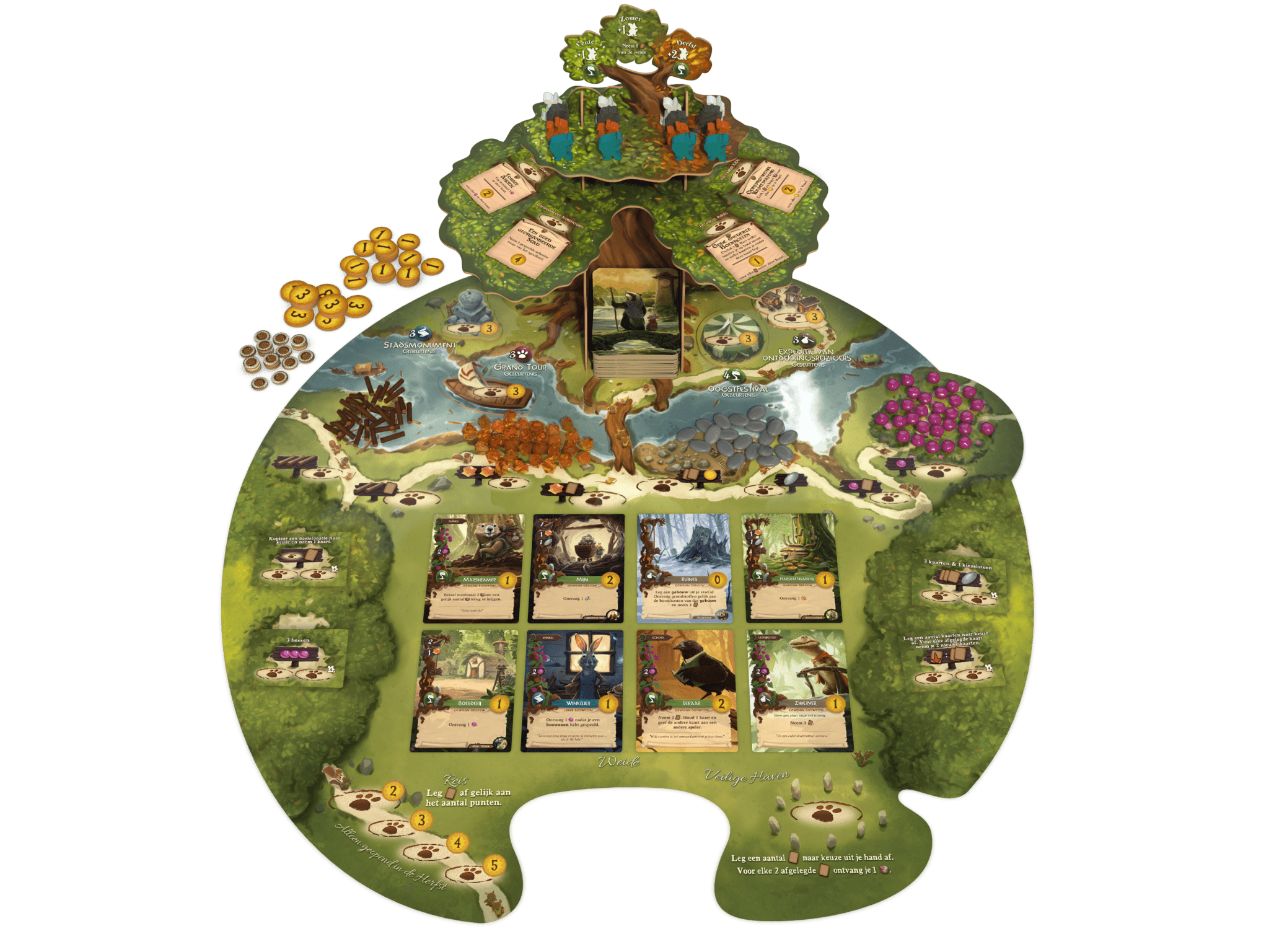 Het prachtige speelbord bestaat uit verschillende onderdelen waarbij de Ever Tree aan de top van het bord geplaatst wordt. Op de Ever Tree plaats je op de bovenste laag de arbeiders en op de onderste laag de speciale gebeurteniskaarten. In het midden van de Ever Tree worden de speelkaarten gedurende het spel bewaard.