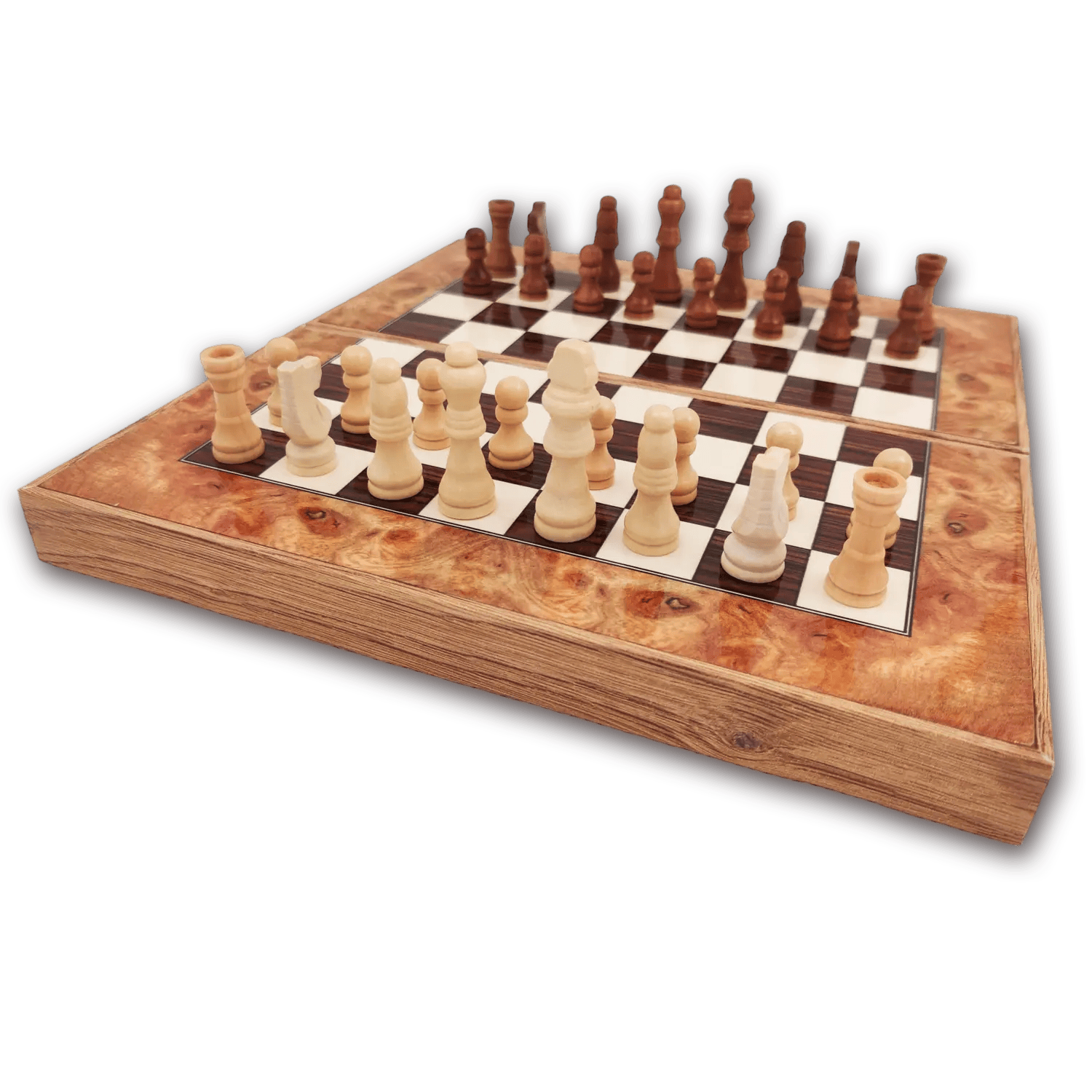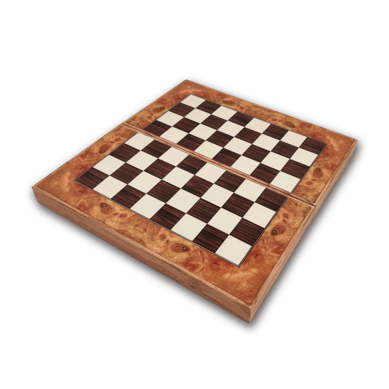 Klein formaat backgammon spel in Rose kleur met schaakbord op de buitenkant in maat S van 25cm. Inclusief dobbelsteentjes en schaakstukken (maar staunton 1). Deze versie sluit magnetisch en is geschikt voor op reis. Je speelt schaken, backgammon en checkers.
