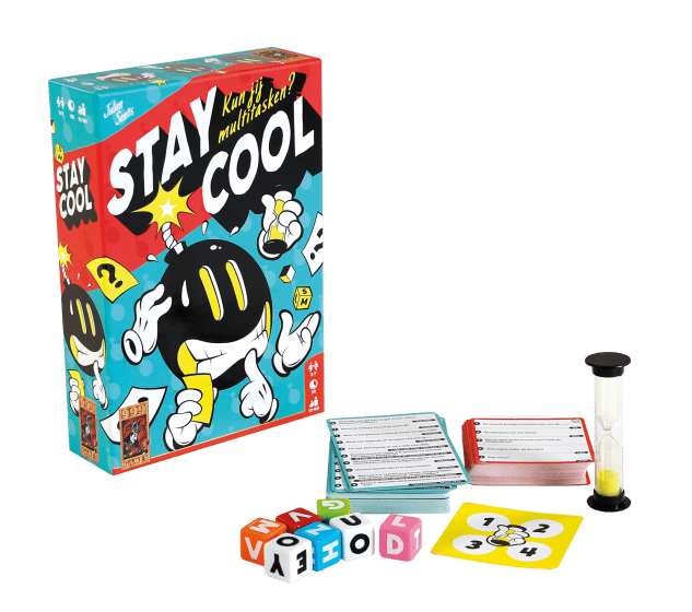 In de partygame Stay Cool komt een spervuur van vragen op je af. Deze vragen worden niet gesteld door één, maar door twee personen. Ondertussen telt een zandloper de seconden af…Zie dan je hoofd maar eens koel te houden! Degene die de meeste vragen goed beantwoordt, wint het spel. Stay Cool van 999 Games is geschikt voor 3 tot 7 spelers en werd verkozen tot Speelgoed van het Jaar 2020.
